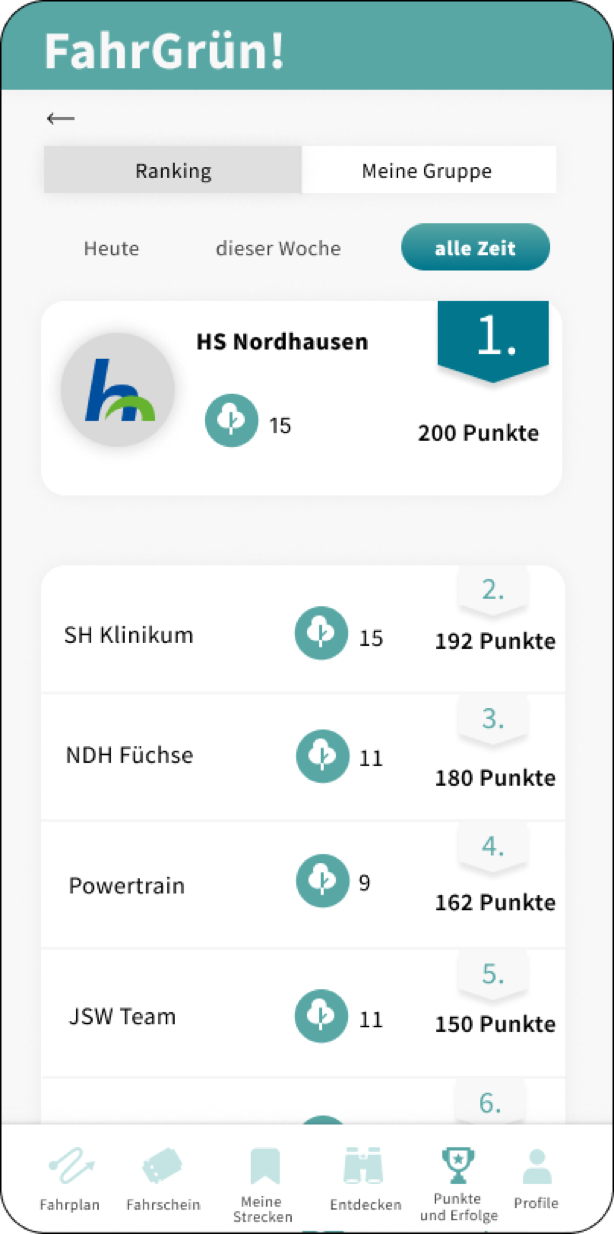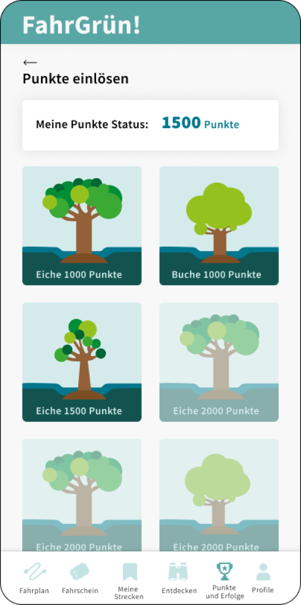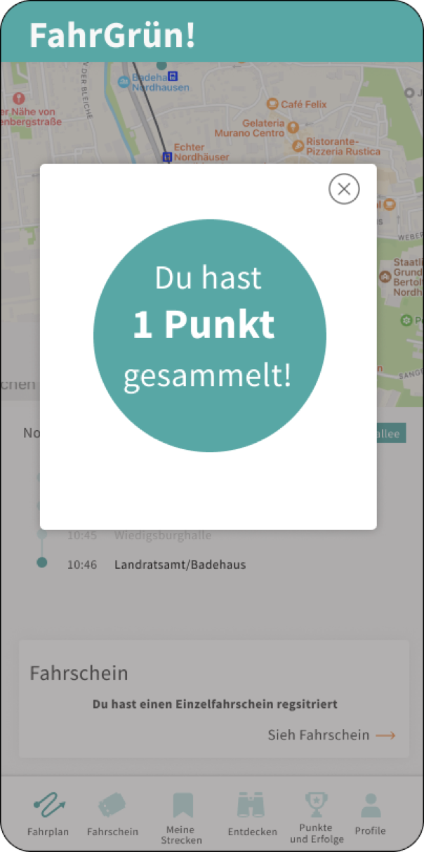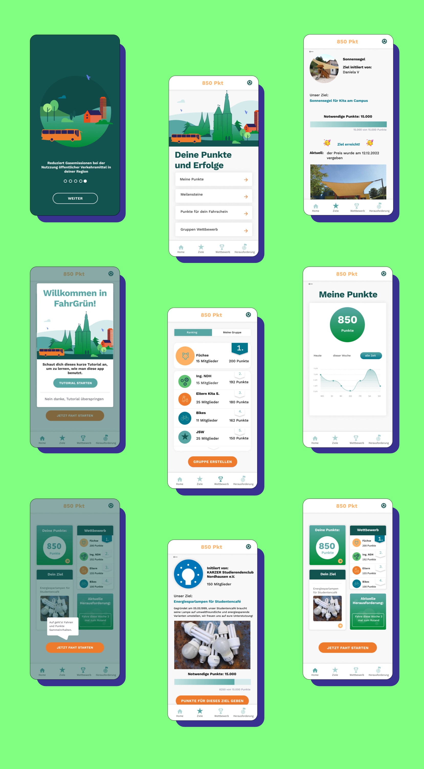 FahrGrün! is a gamification app that rewards users with points for each ride they take on public transportation. The app was developed to encourage more people to use public transportation and reduce the number of cars on the road.