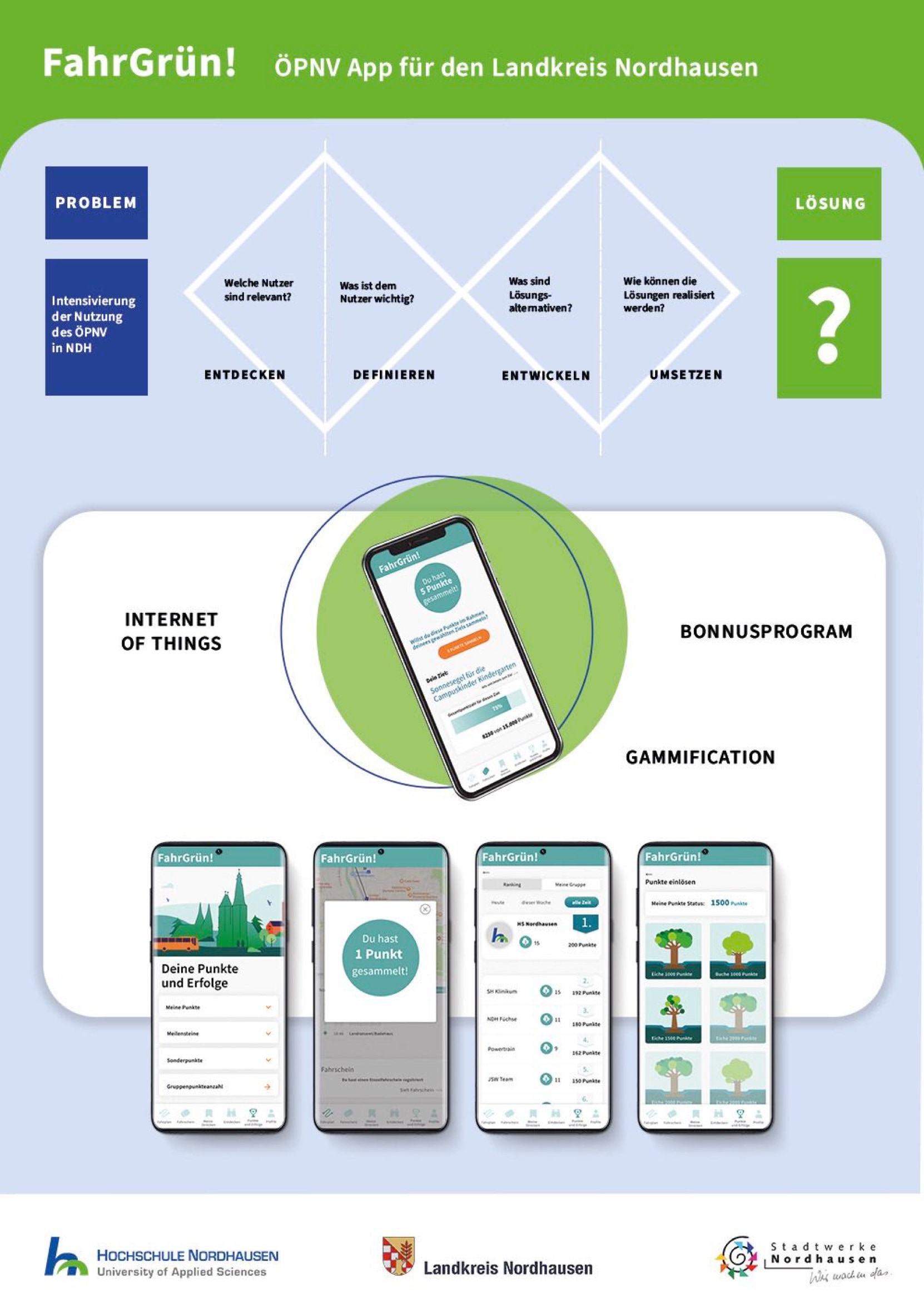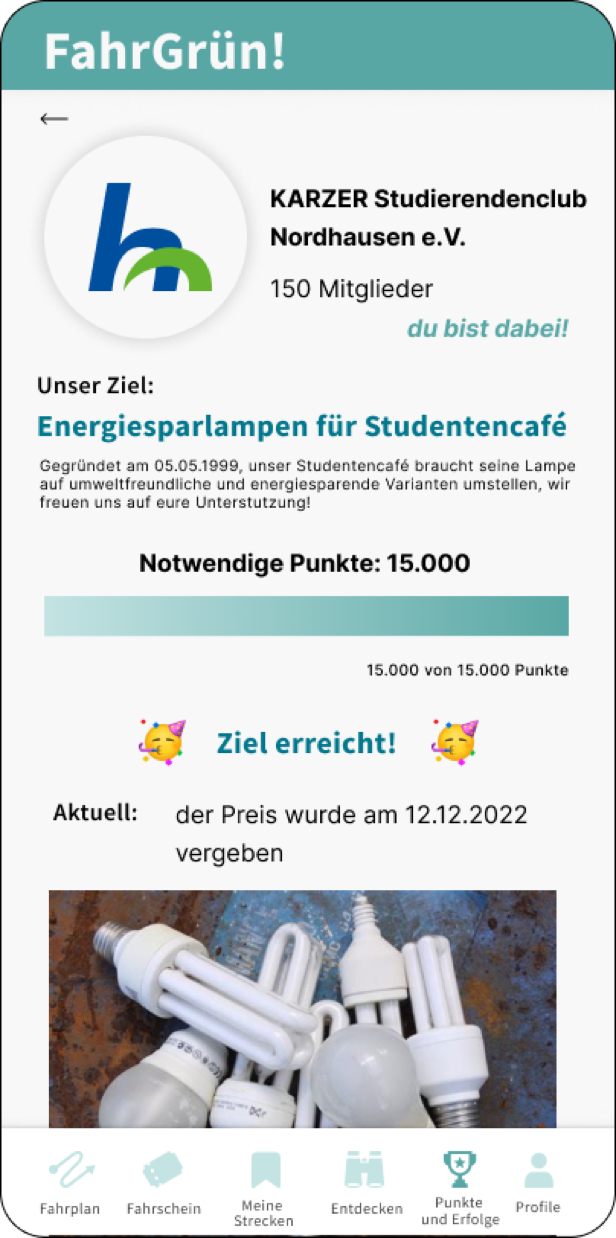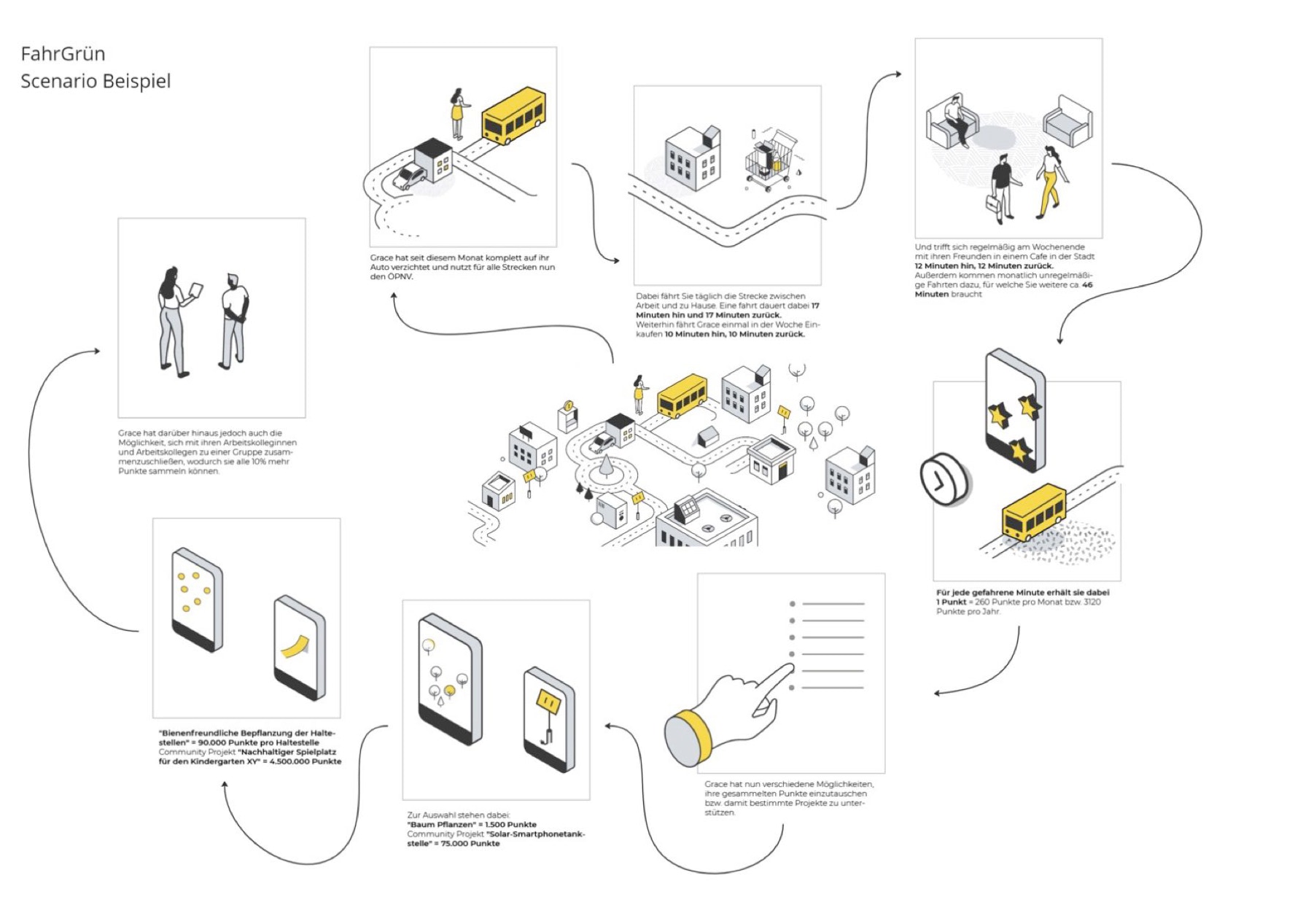 FahrGrün! is a gamification app that rewards users with points for each ride they take on public transportation. The app was developed to encourage more people to use public transportation and reduce the number of cars on the road.